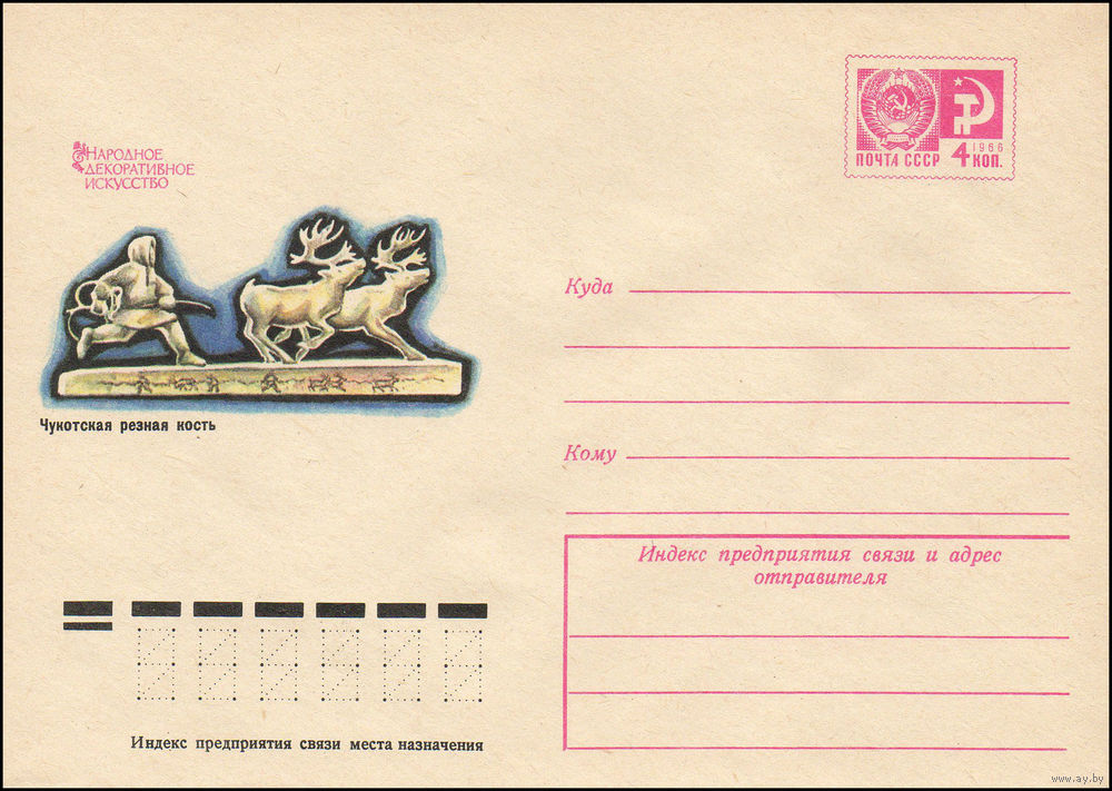 Художественный маркированный конверт СССР N 9782 (11.06.1974) Народное декоративное искусство Чукотская резная кость