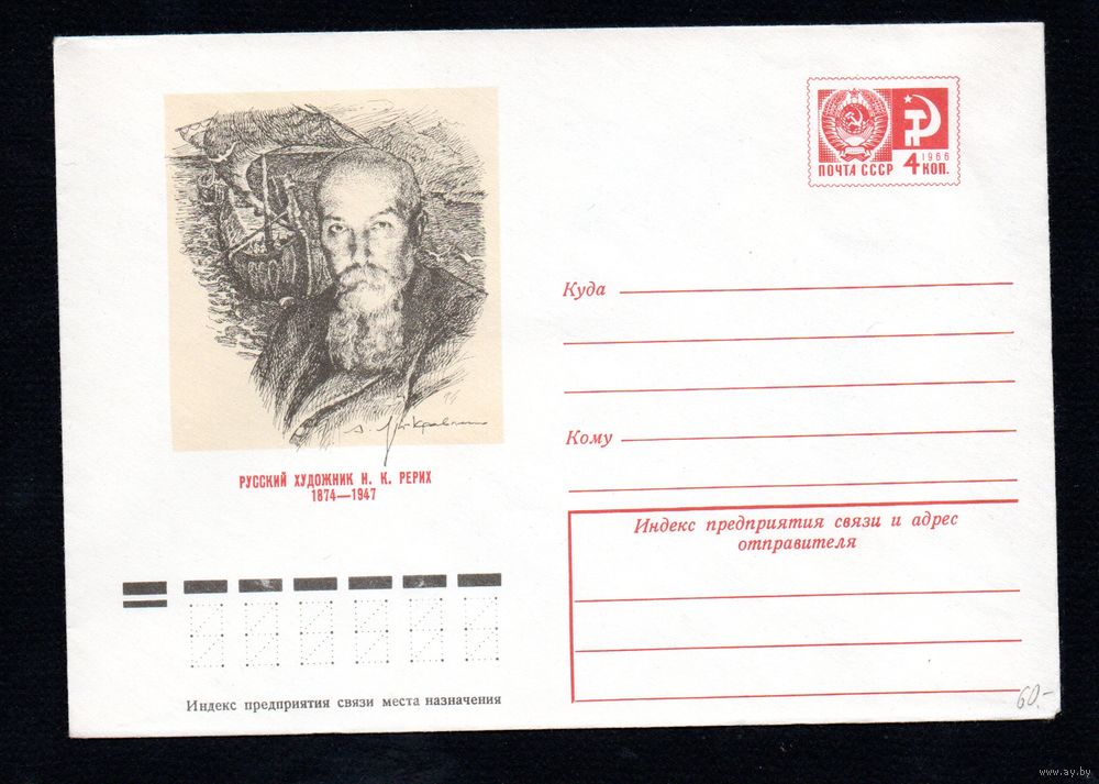 Художественный маркированный конверт СССР N 9810 (марка красная) (25.06.1974) Русский художник Н.К.Рерих 1874-1947