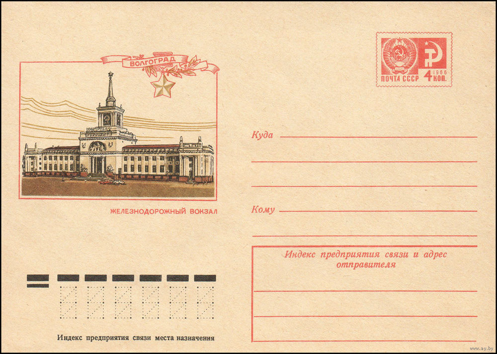 Художественный маркированный конверт СССР N 9842 (11.07.1974) Волгоград. Железнодорожный вокзал