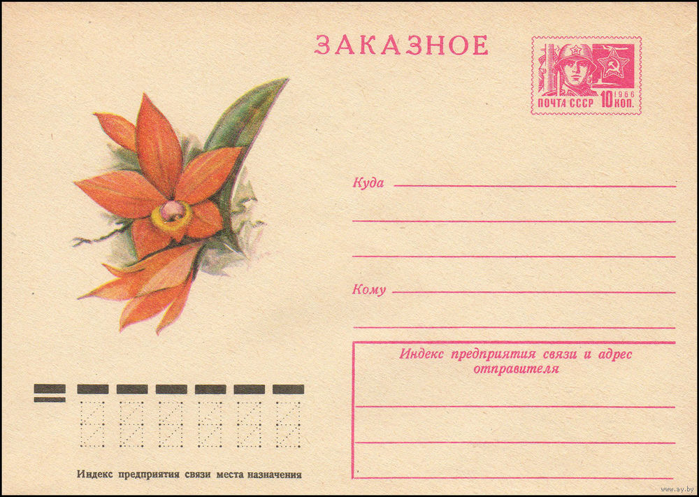 Художественный маркированный конверт СССР N 9997 (17.09.1974) Заказное [Орхидея]