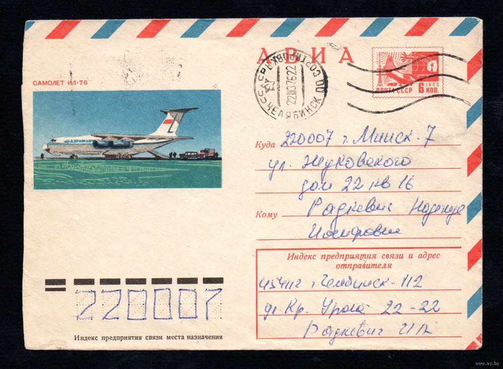 Художественный маркированный конверт СССР прошедший почту N 9551 (06.03.1974) АВИА Самолет ИЛ-76