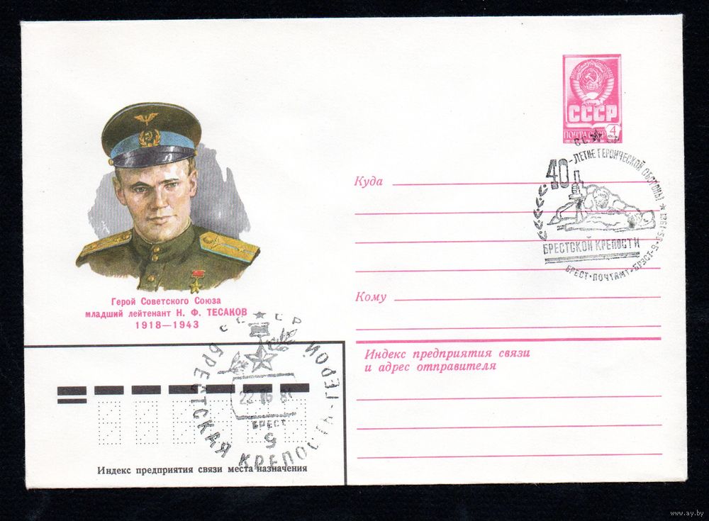 Художественный маркированный конверт СССР с гашениями N 14880 (26.03.1981) Герой Советского Союза младший лейтенант Н.Ф. Тесаков 1918-1943