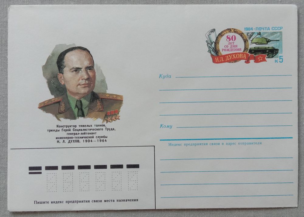Художественный маркированный конверт СССР с оригинальной маркой 1984ХМК с ОМ Духов, конструктор танков