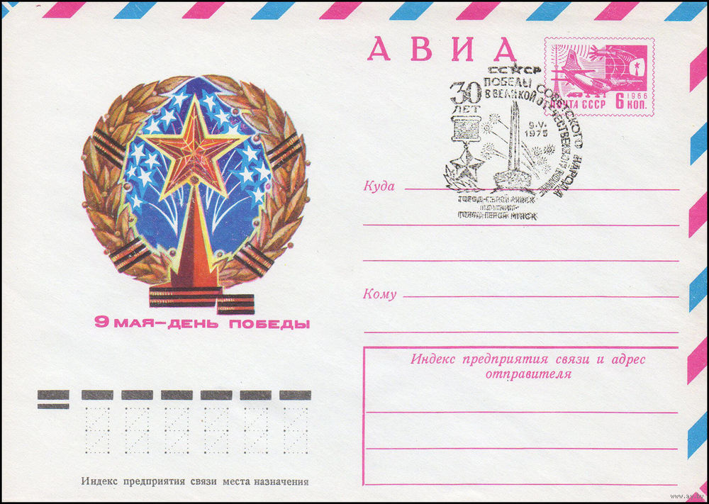 Художественный маркированный конверт СССР со СГ N 74-776(N) (02.12.1974) АВИА 9 мая - День Победы