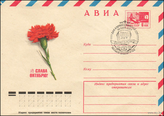Художественный маркированный конверт СССР со СГ N 77-340(N) (23.06.1977) АВИА Слава Октябрю!