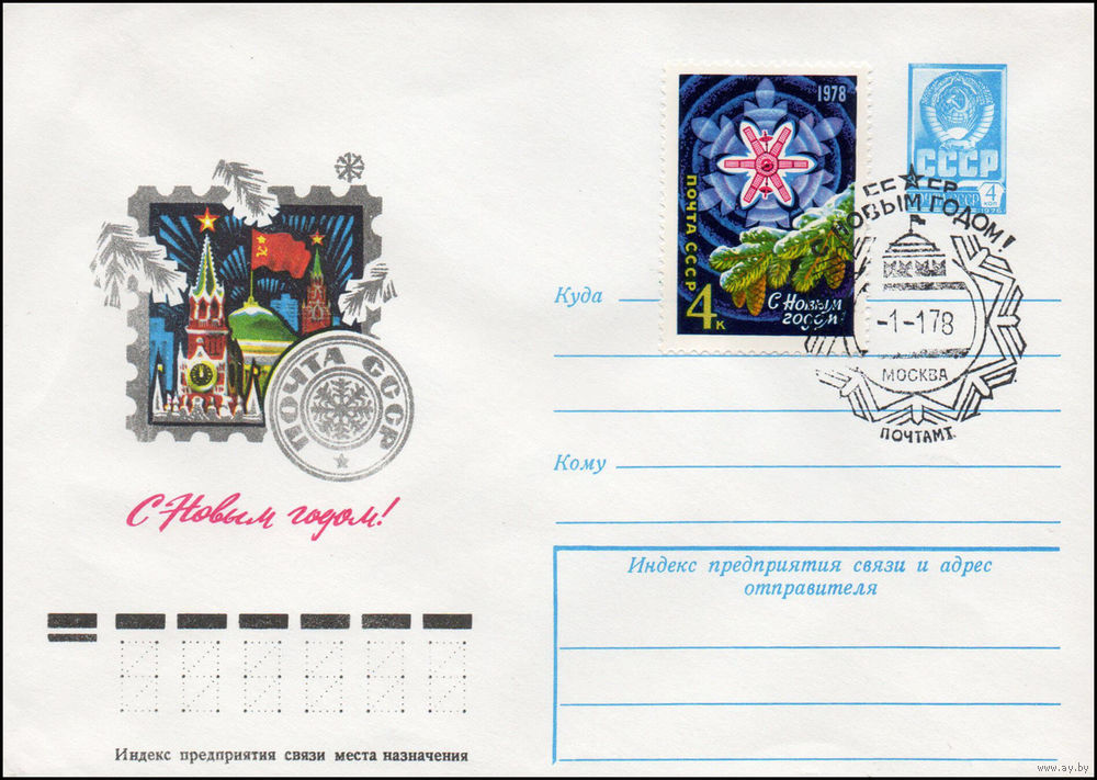 Художественный маркированный конверт СССР со СГ N 77-515(N) (02.08.1977) С Новым годом!