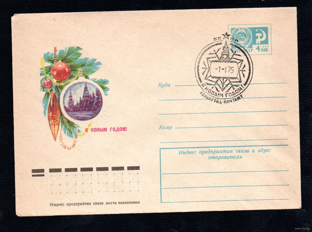 Художественный маркированный конверт СССР со спецгашением N 10044 (08.10.1974) С Новым годом!