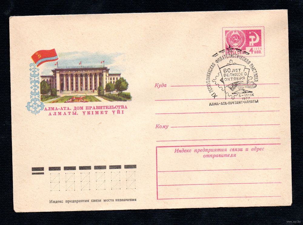 Художественный маркированный конверт СССР со спецгашением N 10177 (09.12.1974) Алма-Ата. Дом Правительства