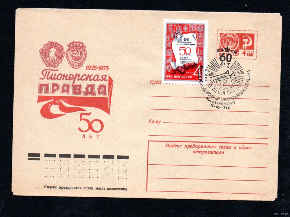 Художественный маркированный конверт СССР со спецгашением N 10293 (04.02.1975) 50 лет Пионерская правда 1925-1975