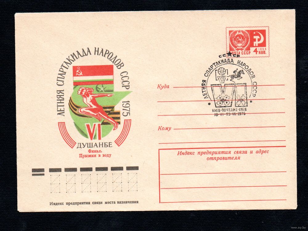 Художественный маркированный конверт СССР со спецгашением N 10297 (05.02.1975) VI летняя Спартакиада народов СССР 1975 Душанбе Финал. Прыжки в воду