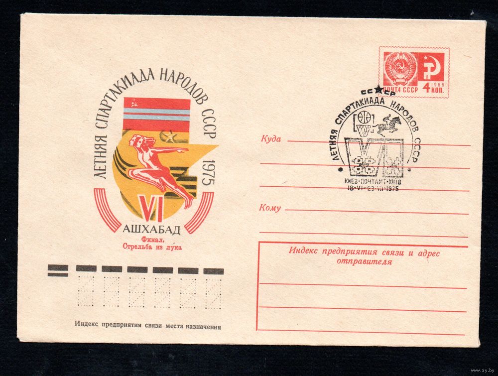 Художественный маркированный конверт СССР со спецгашением N 10319 (14.02.1975) VI летняя Спартакиада народов СССР 1975 Ашхабад Финал. Стрельба из лука