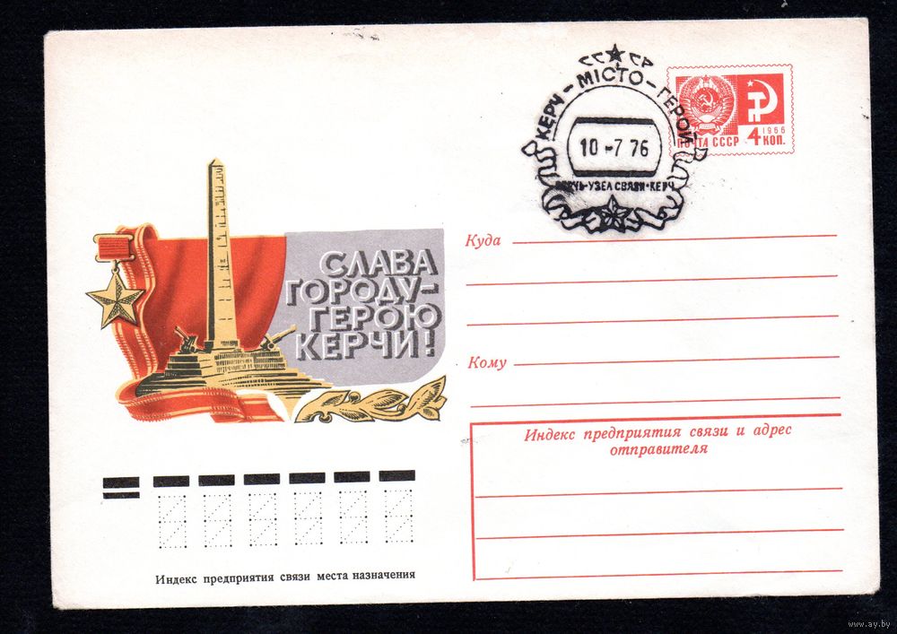 Художественный маркированный конверт СССР со спецгашением N 10324 (17.02.1975) Слава городу-герою Керчи!