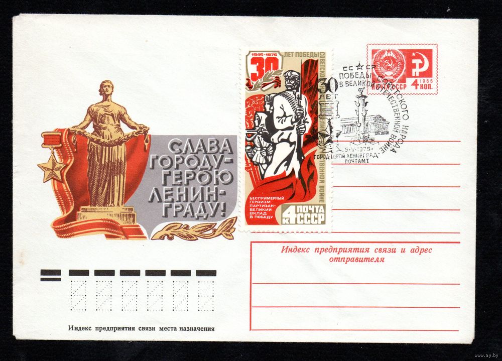 Художественный маркированный конверт СССР со спецгашением N 10326 (17.02.1975) Слава городу-герою Ленинграду!