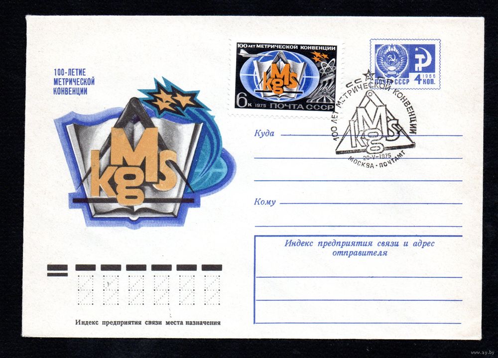 Художественный маркированный конверт СССР со спецгашением N 10334 (17.02.1975) 100-летие Метрической конвенции