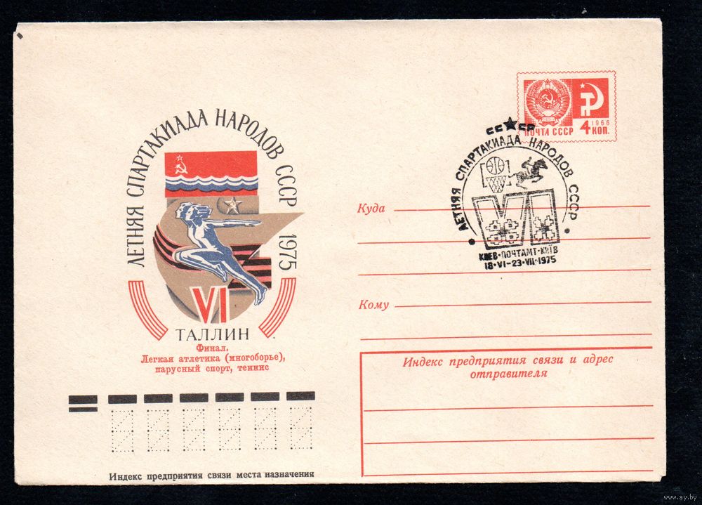 Художественный маркированный конверт СССР со спецгашением N 10354 (28.02.1975) VI летняя Спартакиада народов СССР 1975 Таллин Финал. Легкая атлетика (многоборье), парусный спорт, теннис