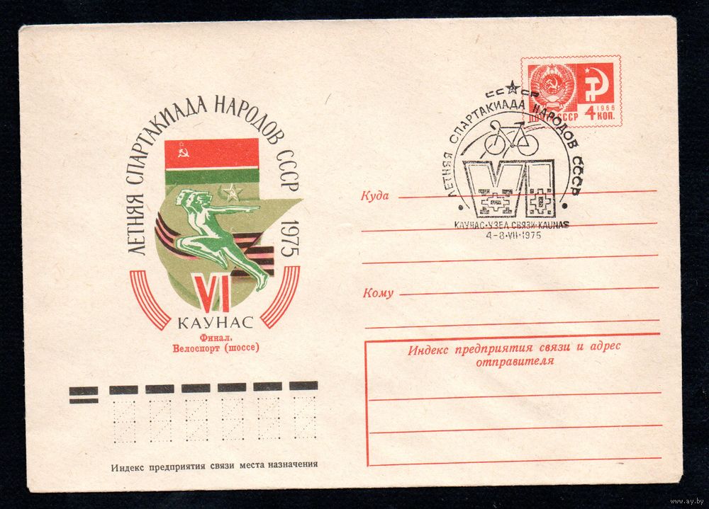Художественный маркированный конверт СССР со спецгашением N 10359 (03.03.1975) VI летняя Спартакиада народов СССР 1975 Каунас Финал. Велоспорт (шоссе)