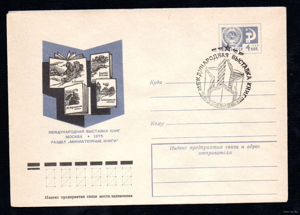 Художественный маркированный конверт СССР со спецгашением N 10361 (03.03.1975) Международная выставка книг Москва 1975 Раздел "Миниатюрные книги"