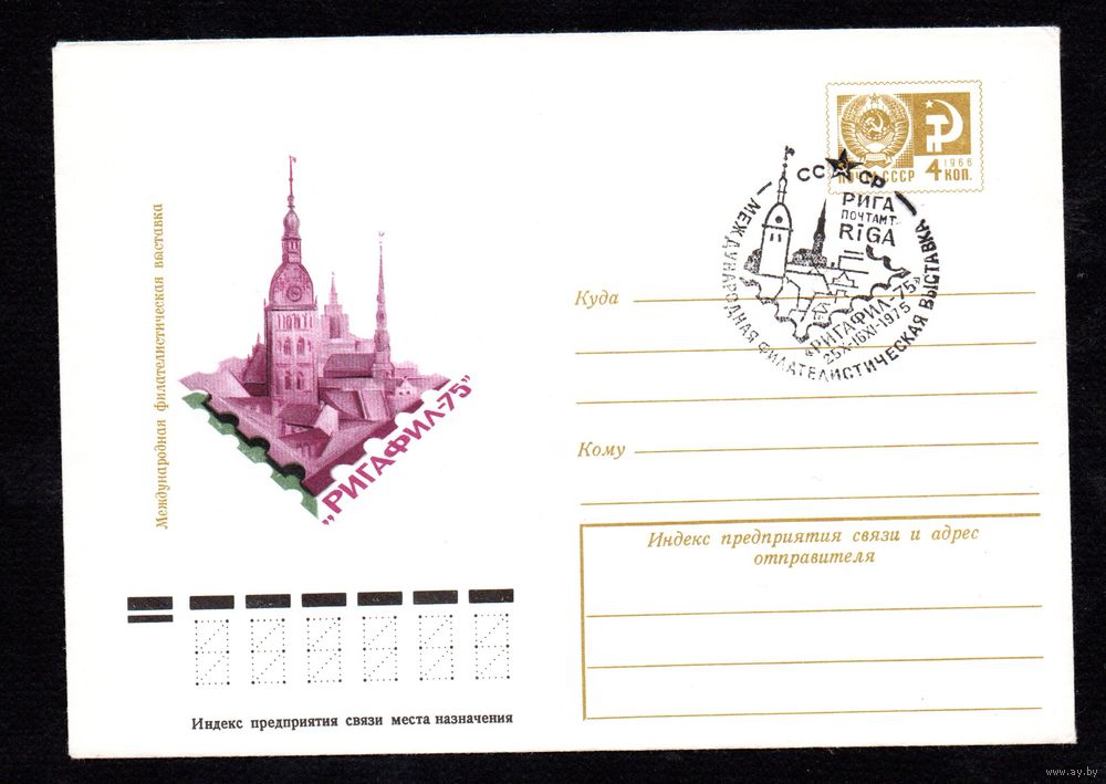 Художественный маркированный конверт СССР со спецгашением N 10649 (07.07.1975) Международная филателистическая выставка "Ригафил-75"