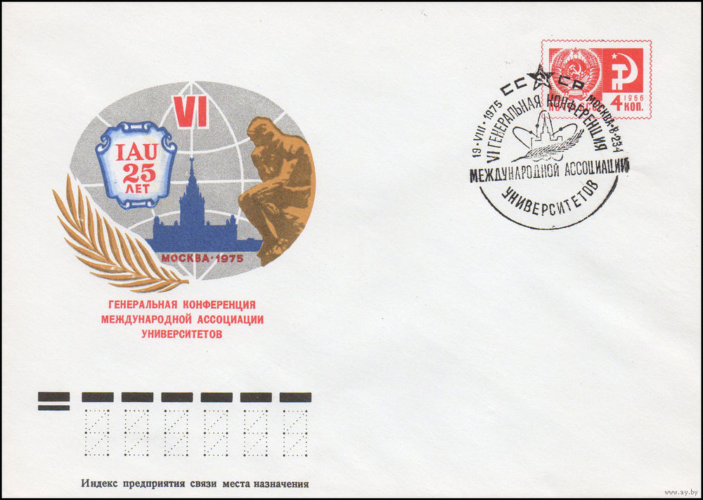 Художественный маркированный конверт СССР со спецгашением N 10670 (15.07.1975) IAU 25 лет VI Генеральная конференция Международной ассоциации университетов