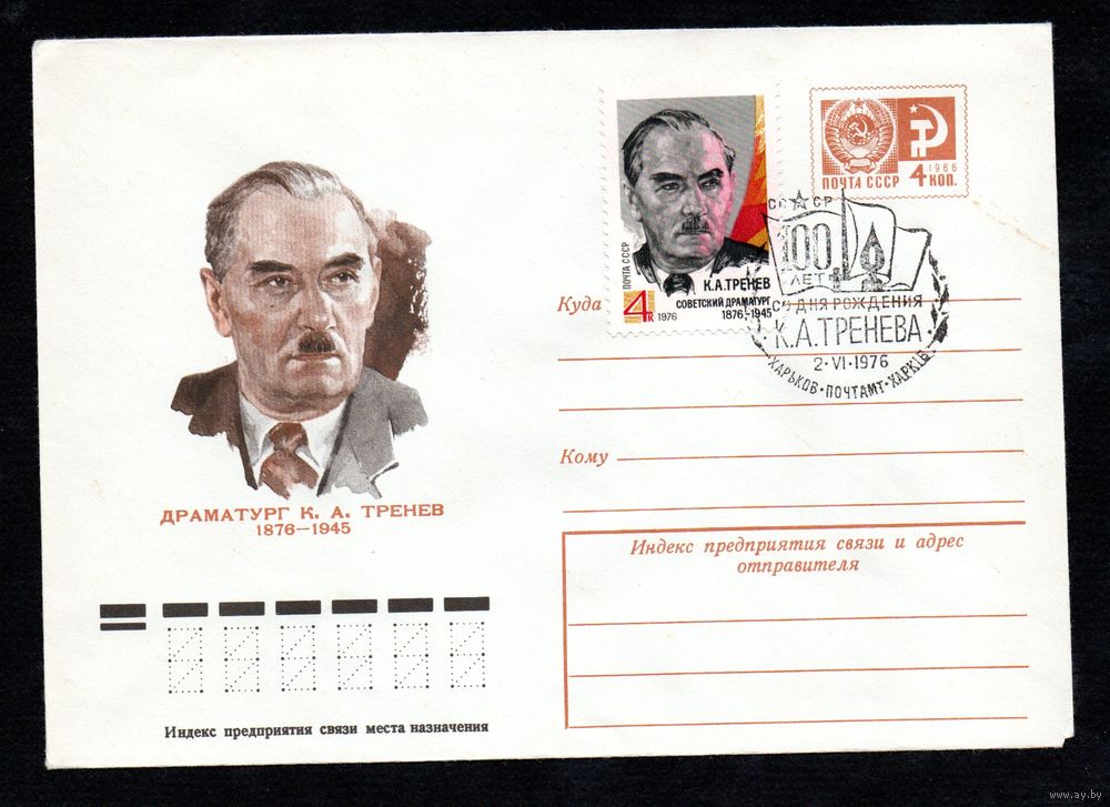 Художественный маркированный конверт СССР со спецгашением N 10962 (09.12.1975) Драматург К.А. Тренев 1876-1945