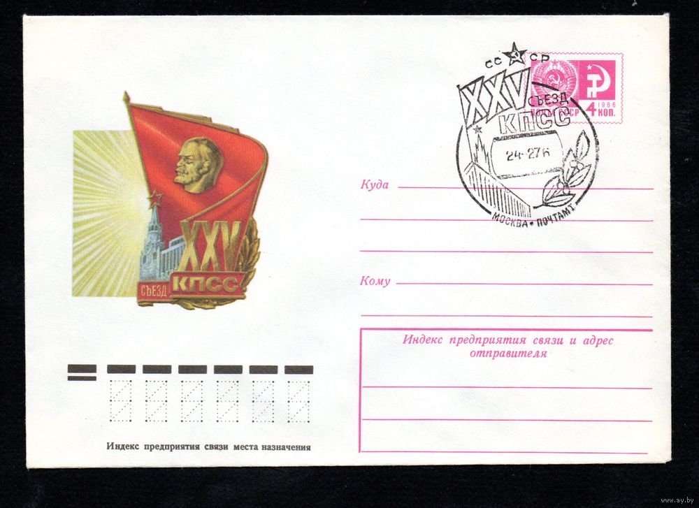 Художественный маркированный конверт СССР со спецгашением N 10978 (15.12.1975) XXV съезд КПСС