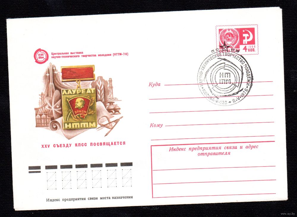 Художественный маркированный конверт СССР со спецгашением N 11090 (28.01.1976) Центральная выставка научно-технического творчества молодежи (НТТМ-76) XXV съезду КПСС посвящается