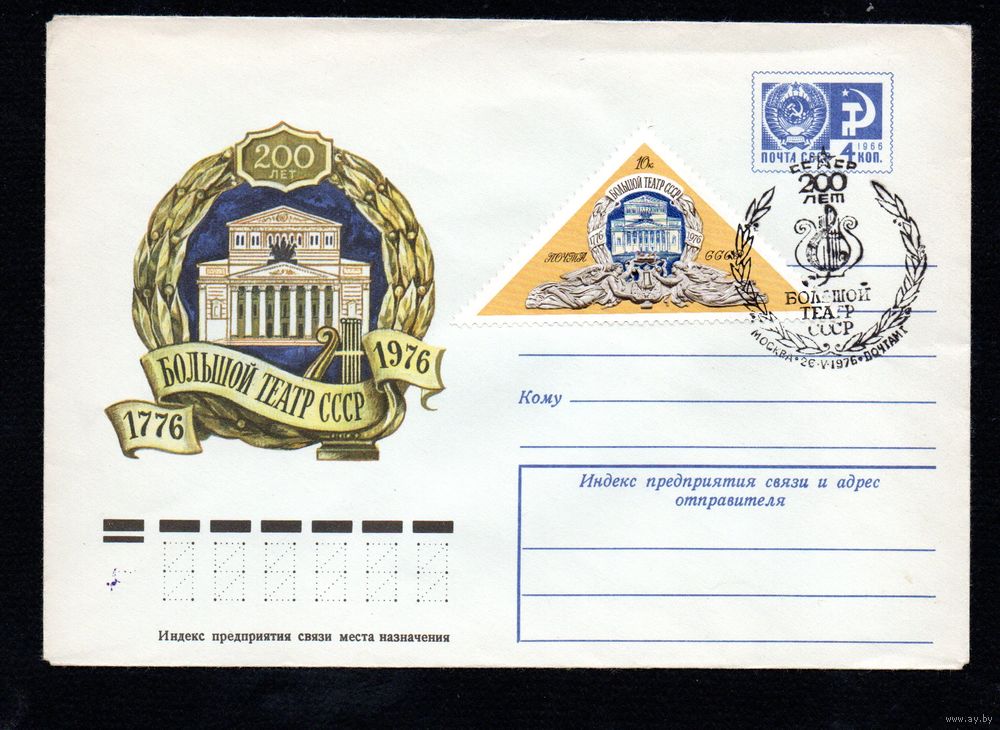 Художественный маркированный конверт СССР со спецгашением N 11103 (09.02.1976) 1776-1976 200 лет Большой театр СССР