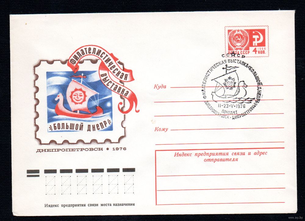 Художественный маркированный конверт СССР со спецгашением N 11181 (09.03.1976) Филателистическая выставка "Большой Днепр" Днепропетровск 1976