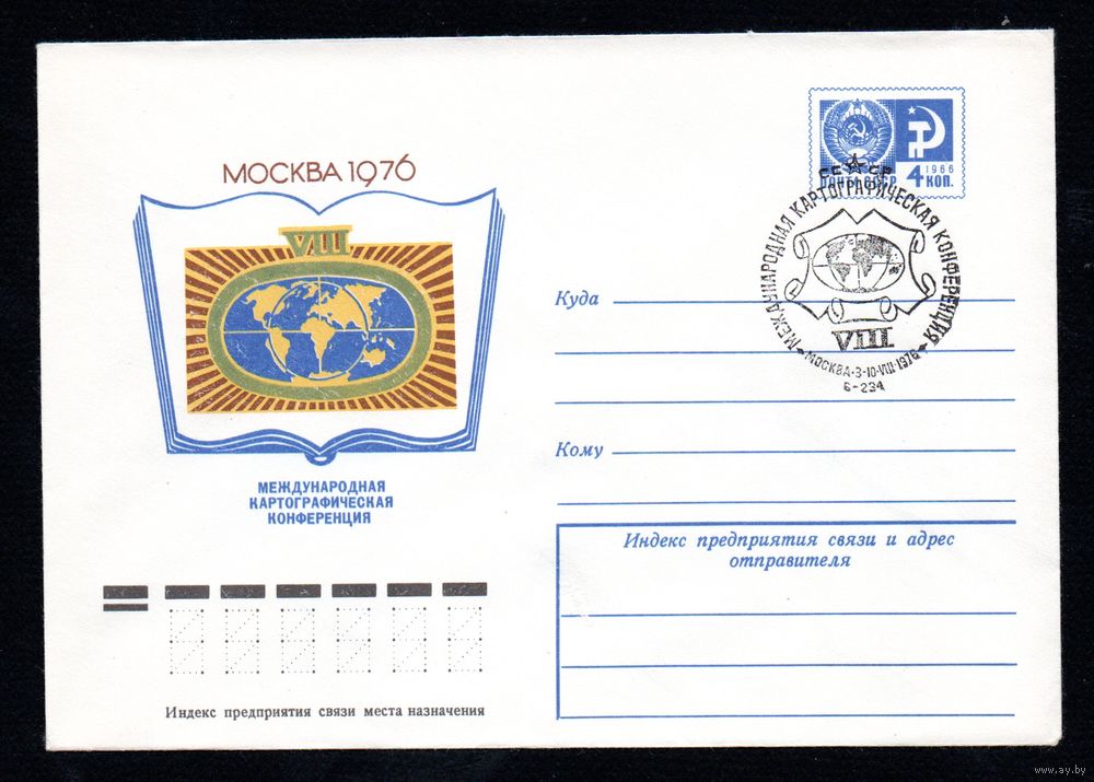 Художественный маркированный конверт СССР со спецгашением N 11368 (03.06.1976) VIII Международная картографическая конференция Москва 1976