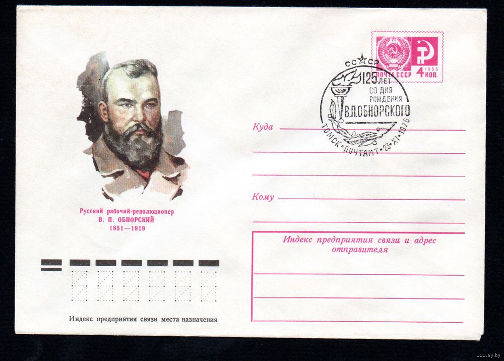 Художественный маркированный конверт СССР со спецгашением N 11565 (06.09.1976) Русский рабочий-революционер В.П. Обнорский 1851-1919