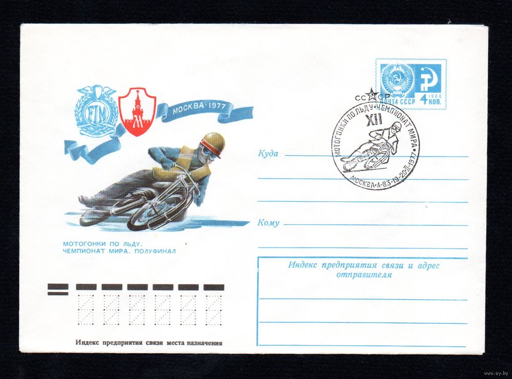 Художественный маркированный конверт СССР со спецгашением N 11720 (30.11.1976) Мотогонки на льду. Чемпионат мира. Полуфинал Москва 1977
