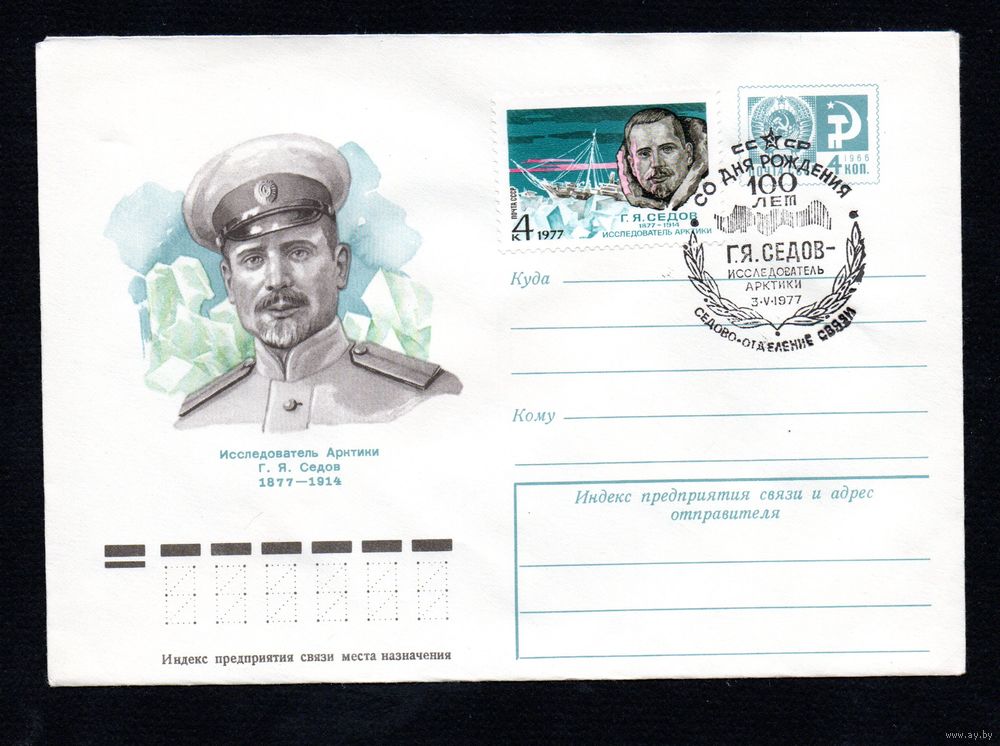 Художественный маркированный конверт СССР со спецгашением N 11830 (26.01.1977) Исследователь Арктики Г.Я. Седов 1877-1914