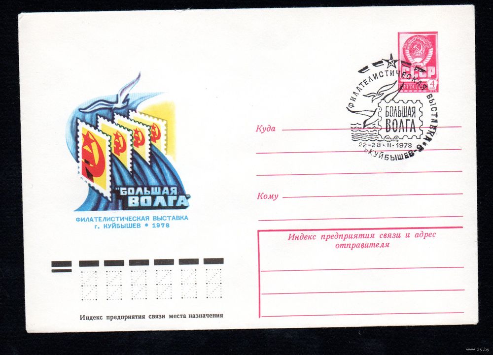 Художественный маркированный конверт СССР со спецгашением N 12594 (13.01.1978) "Большая Волга" Филателистическая выставка г. Куйбышев 1978
