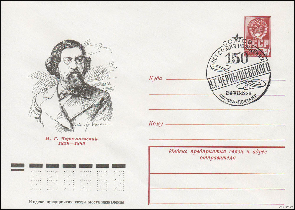Художественный маркированный конверт СССР со спецгашением N 12638 (07.02.1978) Н.Г. Чернышевский 1828-1889