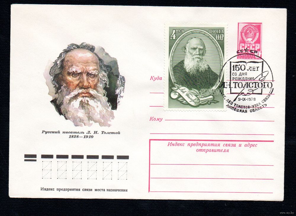 Художественный маркированный конверт СССР со спецгашением N 12694 (03.03.1978) Русский писатель А.Н.Толстой 1828-1910