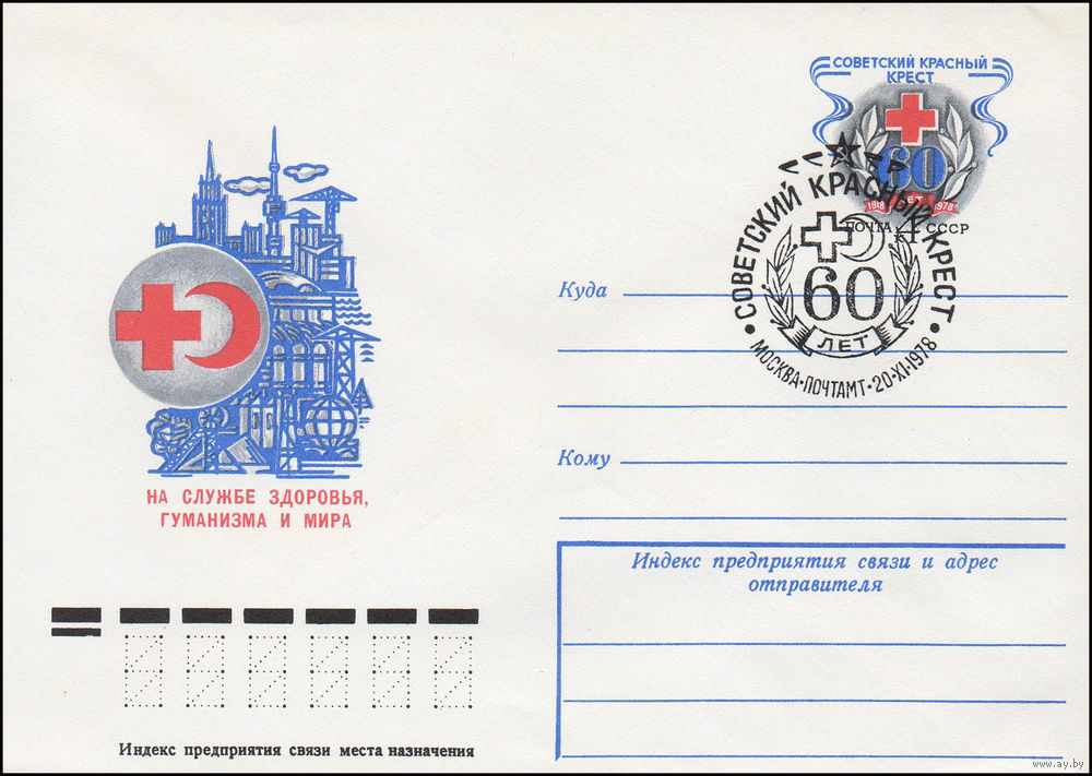Художественный маркированный конверт СССР со спецгашением N 13122 (16.10.1978) На службе здоровья, гуманизма и мира