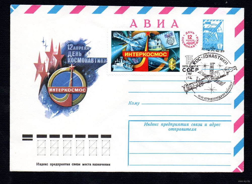 Художественный маркированный конверт СССР со спецгашением N 13309 (29.01.1979) АВИА 12 апреля - День космонавтики Интеркосмос