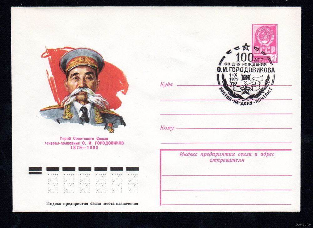 Художественный маркированный конверт СССР со спецгашением N 13409 (28.03.1979) Герой Светского Союза генерал-полковник О.И. Городовиков 1879-1960