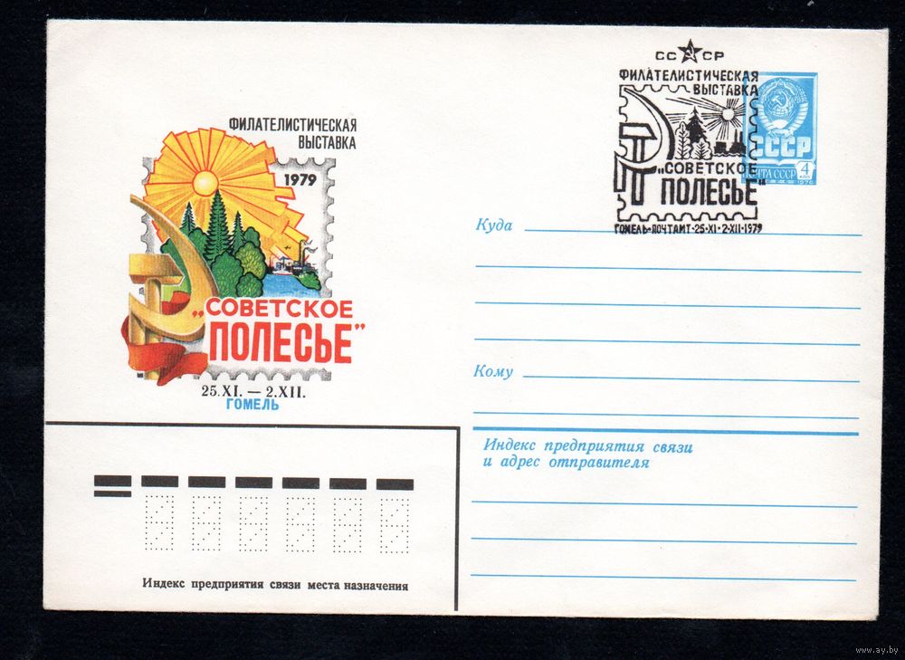 Художественный маркированный конверт СССР со спецгашением N 13434 (10.04.1979) Филателистическая выставка "Советское Полесье" Гомель 1979