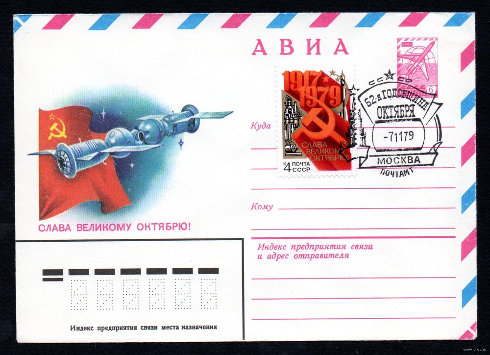 Художественный маркированный конверт СССР со спецгашением N 13517 (11.05.1979) АВИА Слава Великому Октябрю!