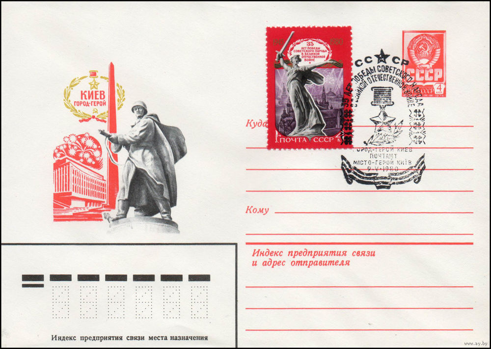 Художественный маркированный конверт СССР со спецгашением N 14042 (07.01.1980) Киев город-герой