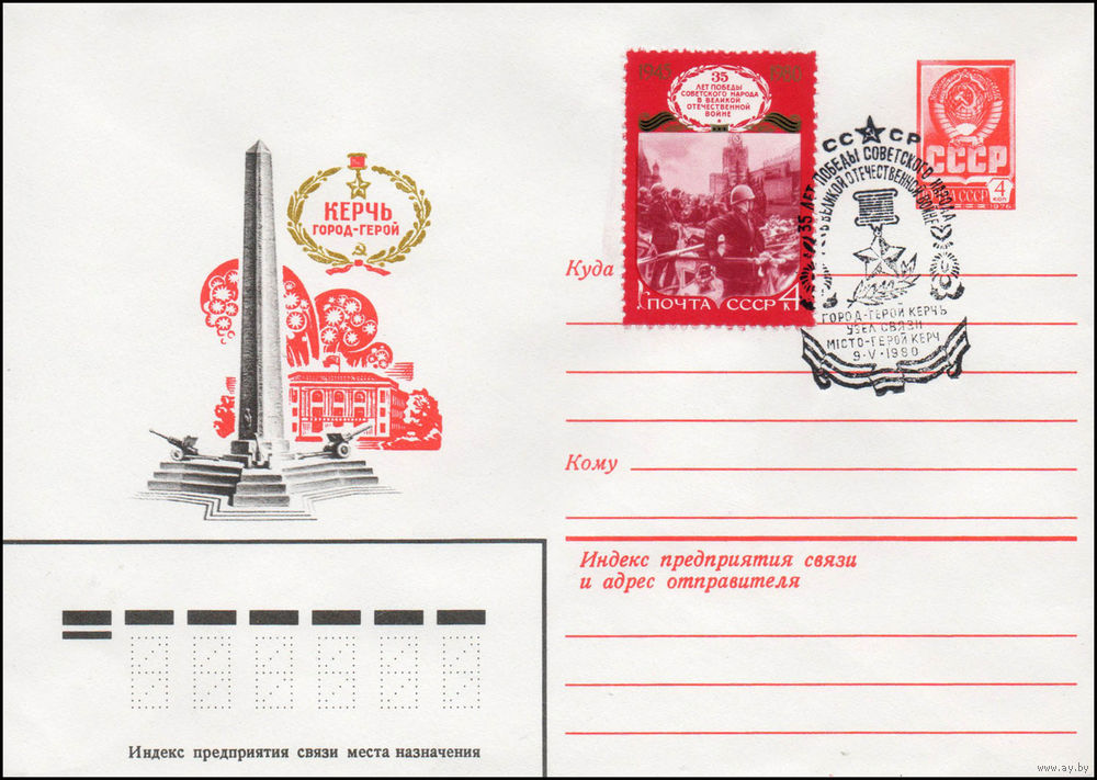 Художественный маркированный конверт СССР со спецгашением N 14120 (14.02.1980) Керчь город-герой