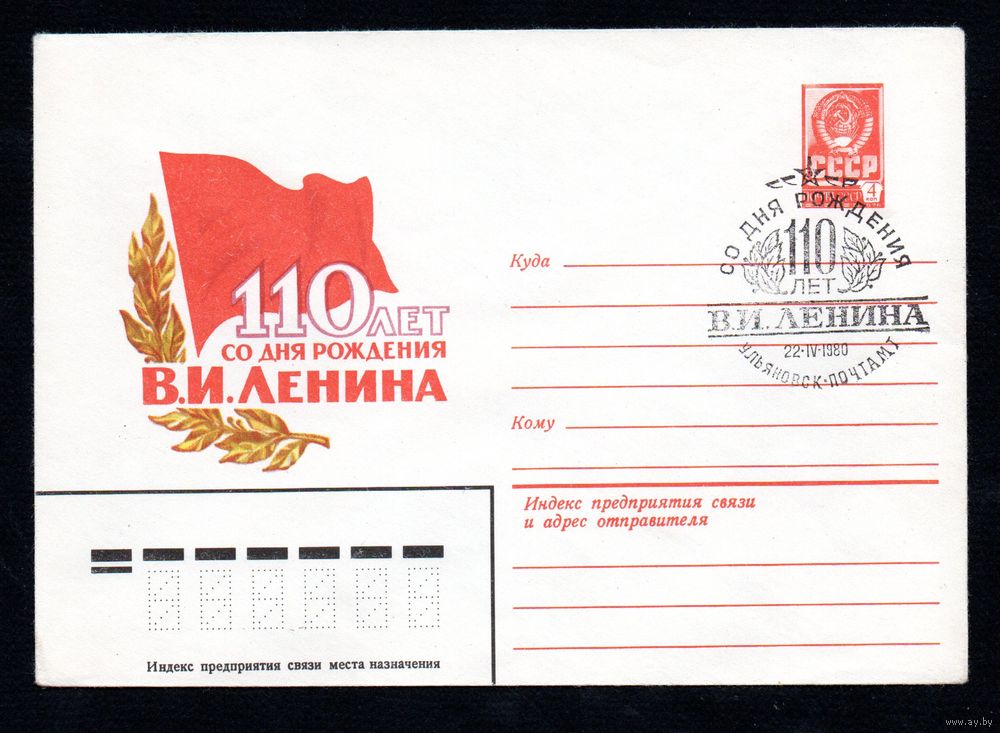 Художественный маркированный конверт СССР со спецгашением N 14166 (05.03.1980) 110 лет со дня рождения В.И. Ленина