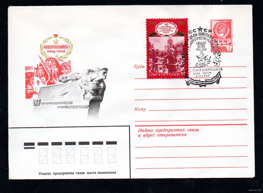 Художественный маркированный конверт СССР со спецгашением N 14201 (25.03.1980) Новороссийск город-герой