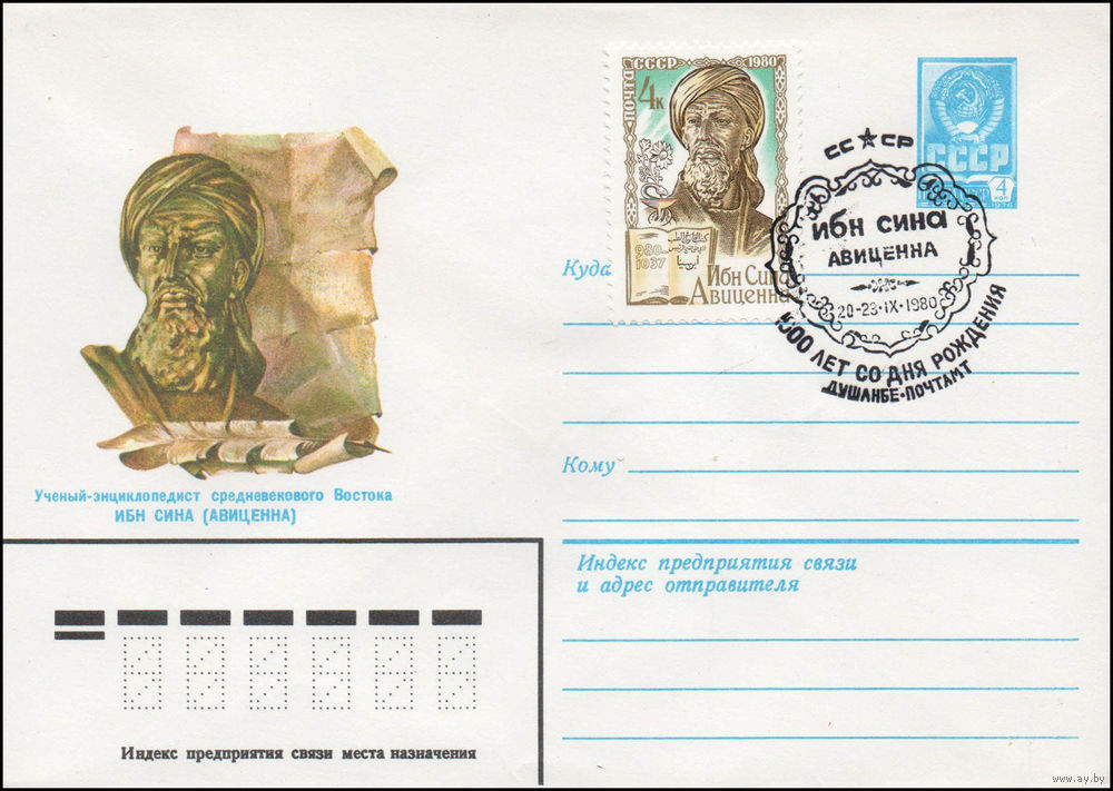 Художественный маркированный конверт СССР со спецгашением N 14227 (08.04.1980) Ученый-энциклопедист средневекового Востока Ибн Сина (Авиценна)