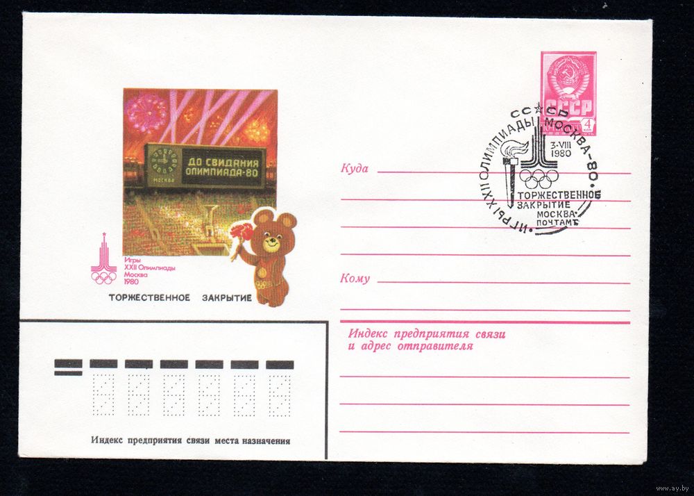 Художественный маркированный конверт СССР со спецгашением N 14285 (30.04.1980) Игры XXII Олимпиады Москва 1980 Торжественное закрытие