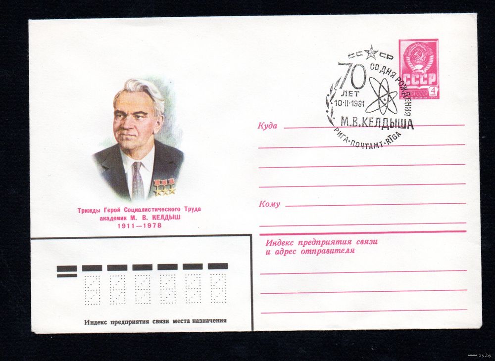 Художественный маркированный конверт СССР со спецгашением N 14604 (15.10.1980) Трижды Герой Социалистического Труда академик М.В. Келдыш 1911-1978
