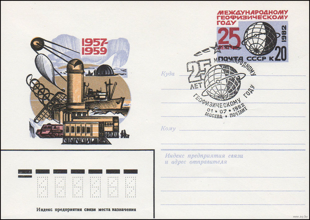 ![Художественный маркированный конверт СССР со спецгашением N 15460 (03.02.1982) 1957-1959 [Международному геофизическому году - 25 лет]](https://s4-lot.aystatic.by/550x510/926/159/5040/5040159926_0.jpg)