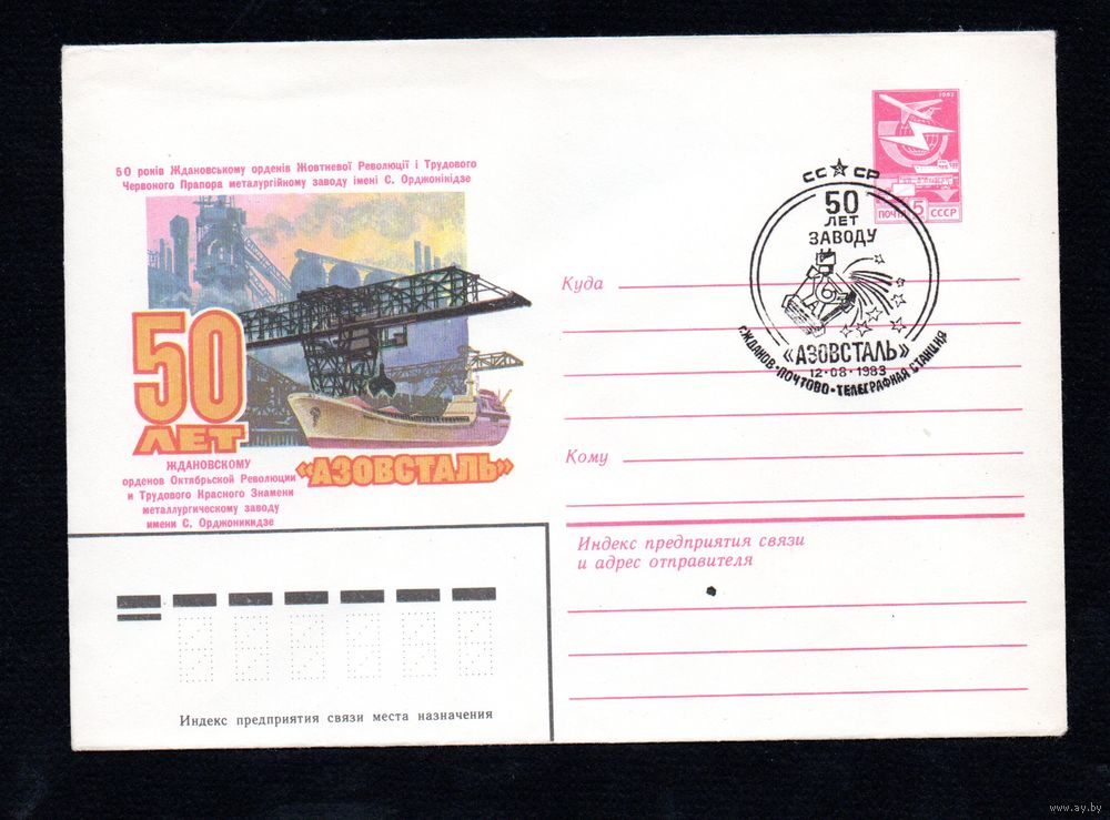 Художественный маркированный конверт СССР со спецгашением N 16041 (25.01.1983) 50 лет Ждановскому ордена Октябрьской Революции и Трудового Красного Знамени металлургическому заводу