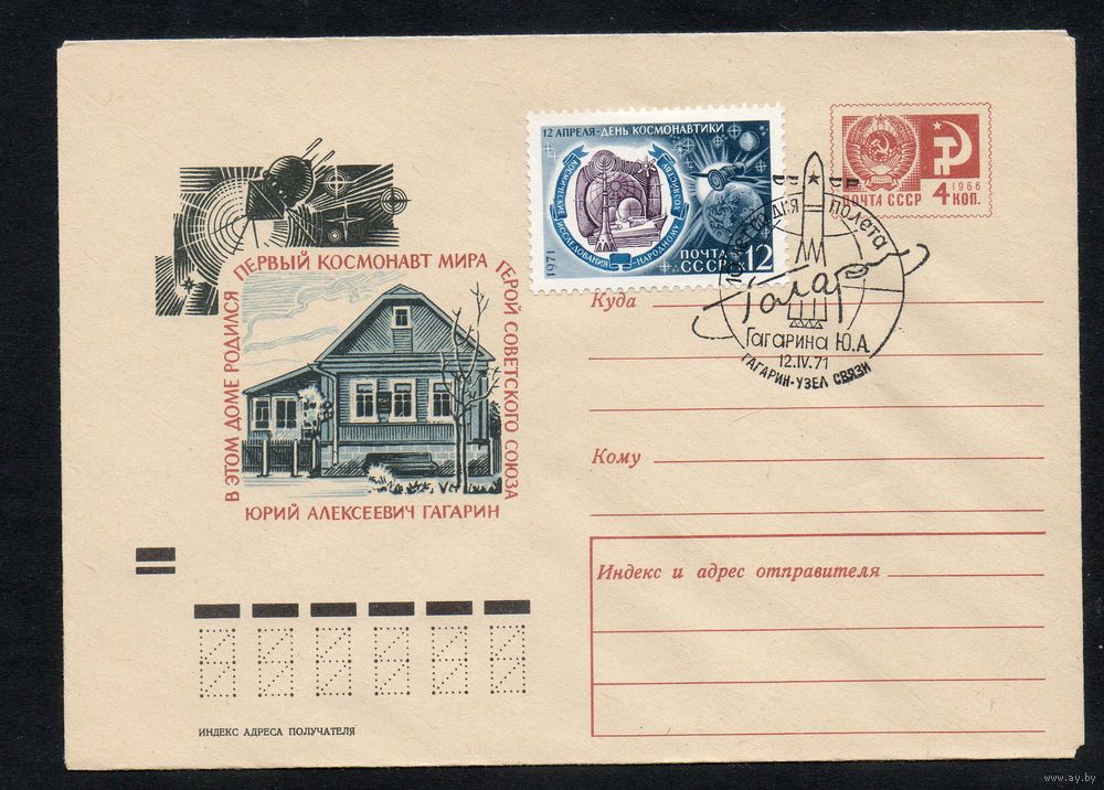 Художественный маркированный конверт СССР со спецгашением N 7364 (17.12.1970) В этом доме родился первый космонавт мира Герой Советского Союза Юрий Алексеевич Гагарин